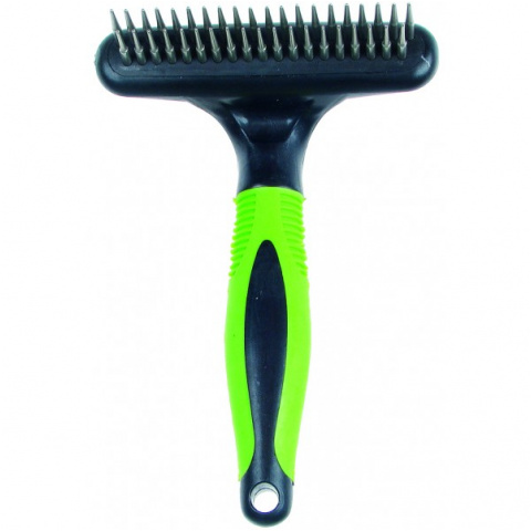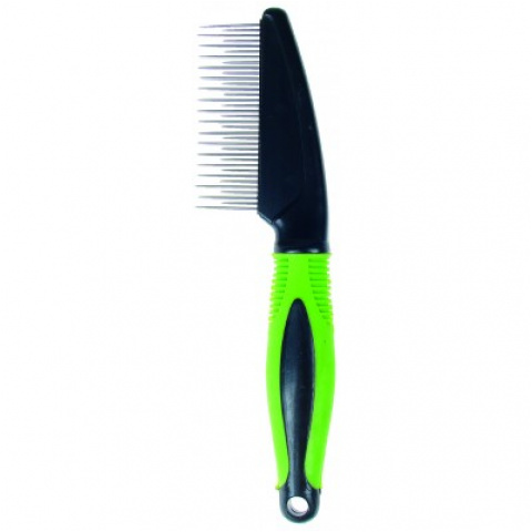 Grzebień dwustopniowy - gęsty, gumowana zielona rączka